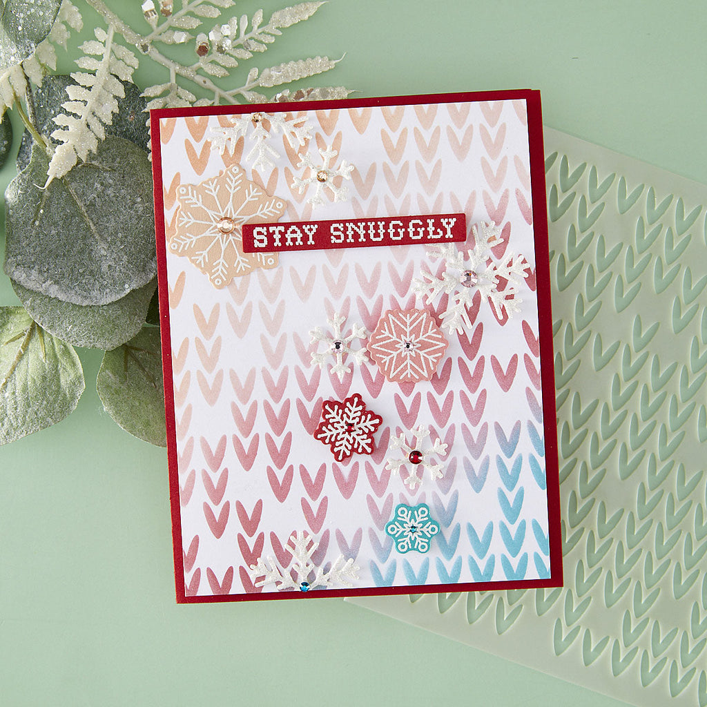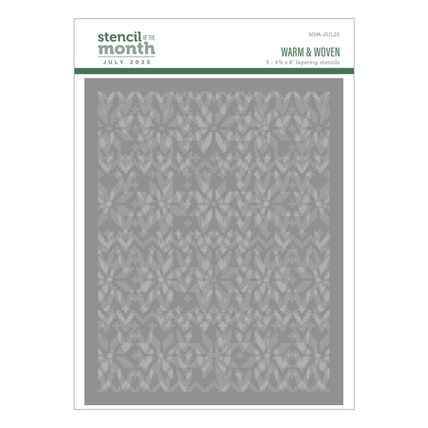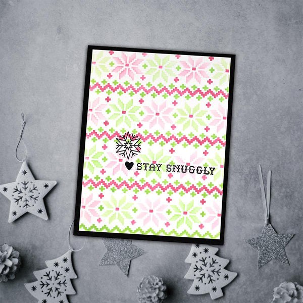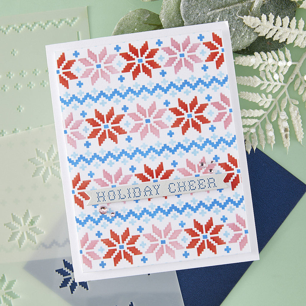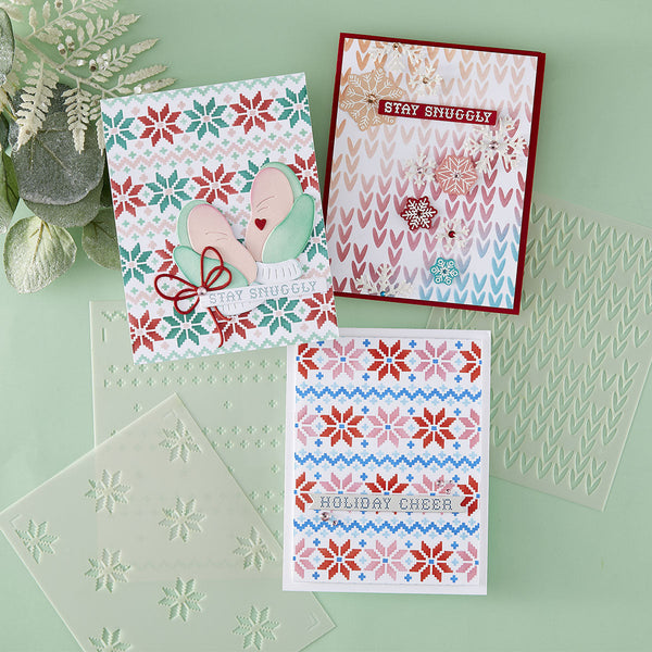 Wrap your projects in handcrafted charm with the Warm & Woven Stencil Set. This five-piece layering stencil mimics the look of classic Fair Isle knitting, letting you blend soft, cozy colors into patterns that feel like your favorite winter sweater. Perfect for building festive backgrounds or adding homespun texture to cards, tags, and journals.