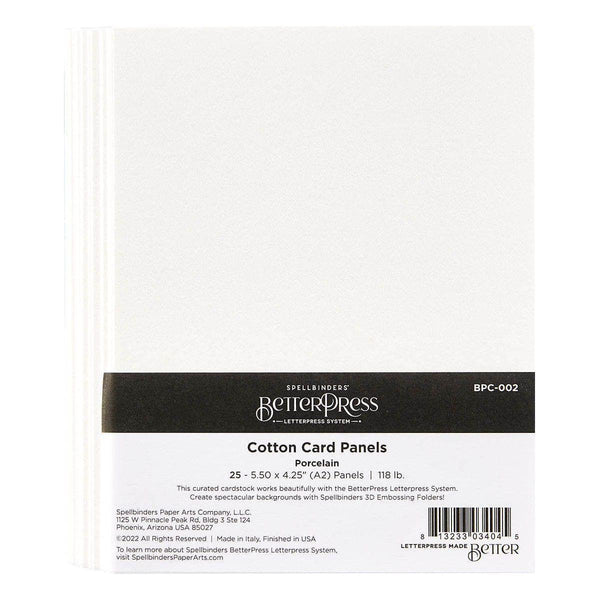 - BetterPress A2 Cardstock – Porcelain (BPC-002) – 100% cotton panels for the best impressions.