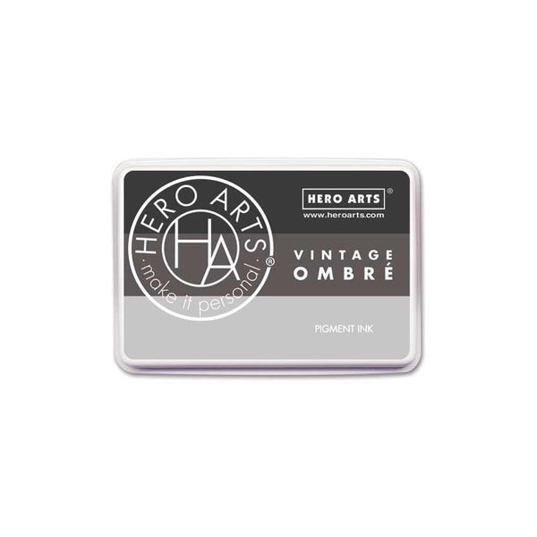 An Ombré pad in steely colors, offering a slight sheen and a somewhat distressed vintage look. Pigment ink.