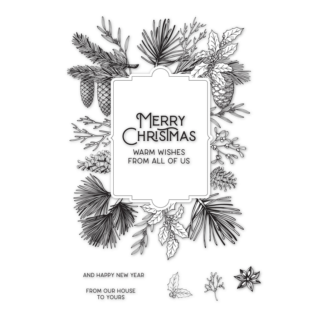 Pine Cones & Holly - 8-Piece Clear Stamp of the Month is a unique and fun stamp set for the best cards. Released July 2023 to our New Clear Stamp of the Month Club. This unique clear stamp set features high quality photopolymer for clear, crisp impressions. Made in the USA. Our stamps create one of the best impressions on the market giving you a perfect stamped image every time!