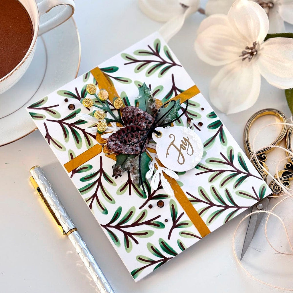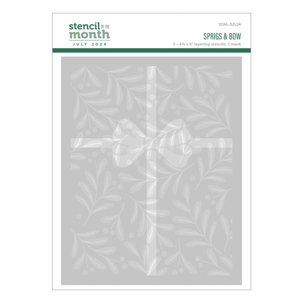 Sprigs & Bow - Stencil of the Month - Released July 2024 to our New, Stencil of the Month Club creates a beautiful background for cards, décor, gift card holder, gifts, and more!