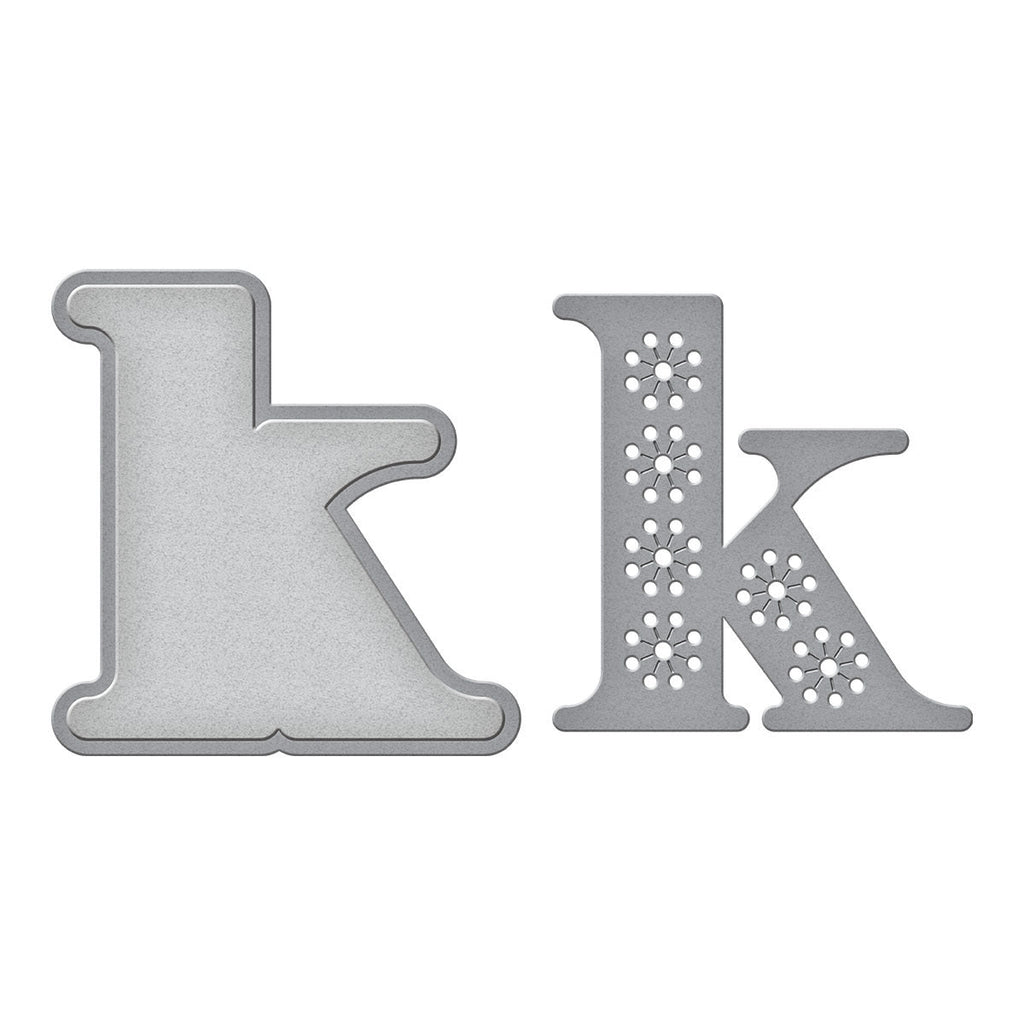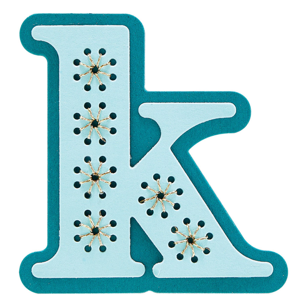 Stitched k Etched Dies from the Stitched Alphabet Collection is a set of two thin metal dies that include the serif font of the lowercase letter k and its outline shape. The letter cuts sweet floral burst accents of dots and lines which acts as a guide for stitching the pattern with embroidery floss and needle. Or use as is. The choice is yours! Designer’s Tip: use two strands of a six-strand DMC Floss or DMC Diamant Metallic Thread and Size 22 Tapestry Needle (sold separately) are recommended.
