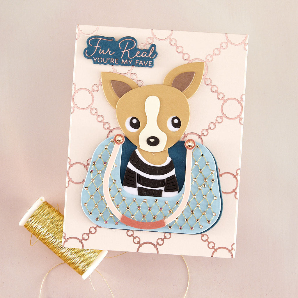 Fur-Ever Fabulous pairs charming character design with couture-inspired stitching details. This playful set lets you assemble an adorable pup—big eyes, expressive markings, and a cozy sweater—nestled inside a quilted handbag. Each piece layers cleanly, creating a dimensional scene with gentle curves and polished silhouettes.