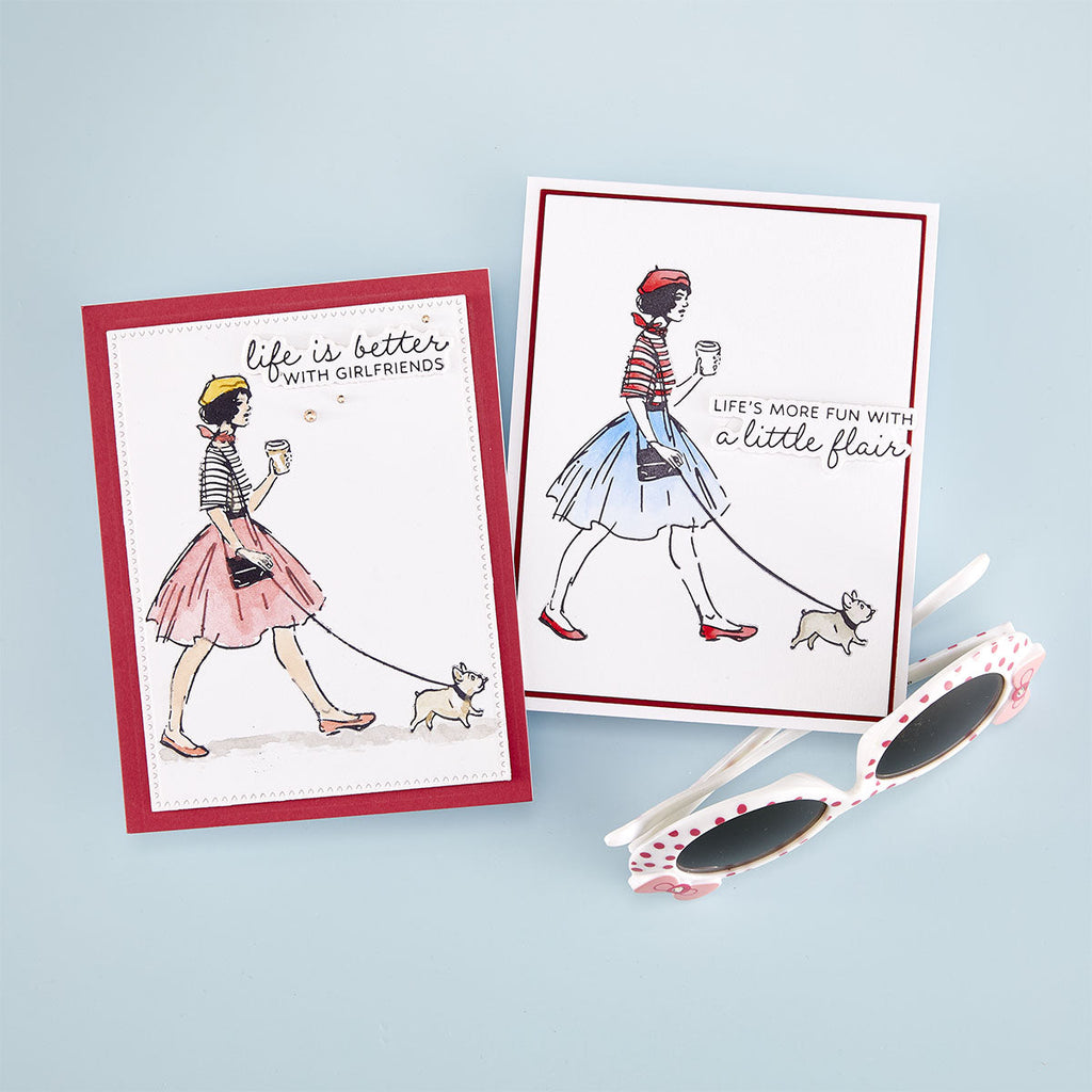 Coordinating sentiments offer thoughtful versatility, from celebrating friendship to marking beautifully lived everyday moments. Whether paired with soft watercolor washes or kept strikingly monochrome, every impression creates a card that feels refined, feminine, and delightfully modern.