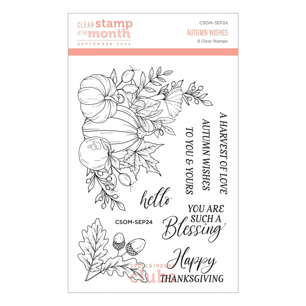 Autumn Wishes - Clear Stamp of the Month - 8-Piece Clear Stamp of the Month is a unique and fun stamp set for the sweetest cards. Released September 2024 to our New Clear Stamp of the Month Club. This unique clear stamp set features high quality photopolymer for clear, crisp impressions. Made in the USA. Our stamps create one of the best impressions on the market giving you a perfect stamped image every time!