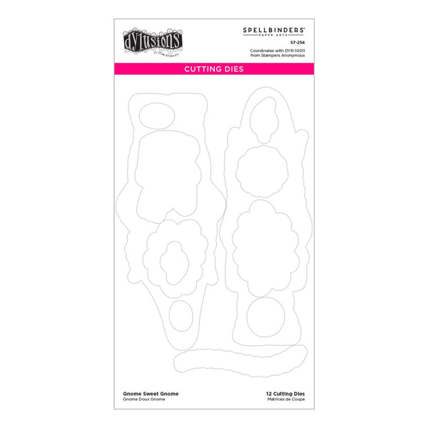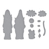 Gnome Sweet Gnome Stamp and Die Bundle are from Stamps & Dies by Dyan Reaveley. It includes S7-254 Gnome Sweet Gnome Etched Dies and DYR-10011 Gnome Sweet Gnome Cling Stamps. Together, they create a whimsical gathering of three gnomes and their love of hats! It even has two sizes of gnome trees for a unique backdrop. Use the cling stamps with an acrylic stamping block.