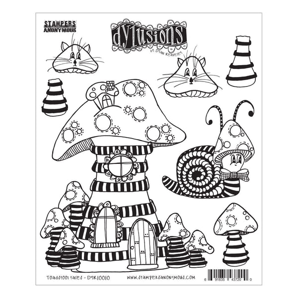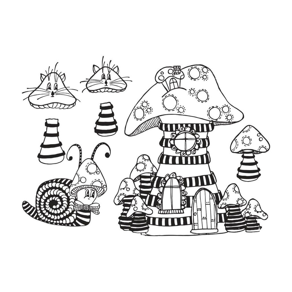 Toadstool Tales Cling Stamps are from Stamps & Dies by Dyan Reaveley. It even includes a friendly snail for extra fun! Use with an acrylic stamping block.