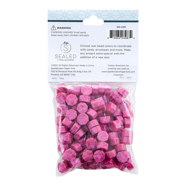 Fuchsia Wax Beads are from the Sealed by Spellbinders Collection and contains 100 wax beads in a fun and bold fuchsia color. The entire bag can create approximately 25 seals. Use with the WS-001 Wax Seal Kit to complete your wax seal ensemble. For other choices of wax bead colors, look to Spellbinders’ offerings in this collection.