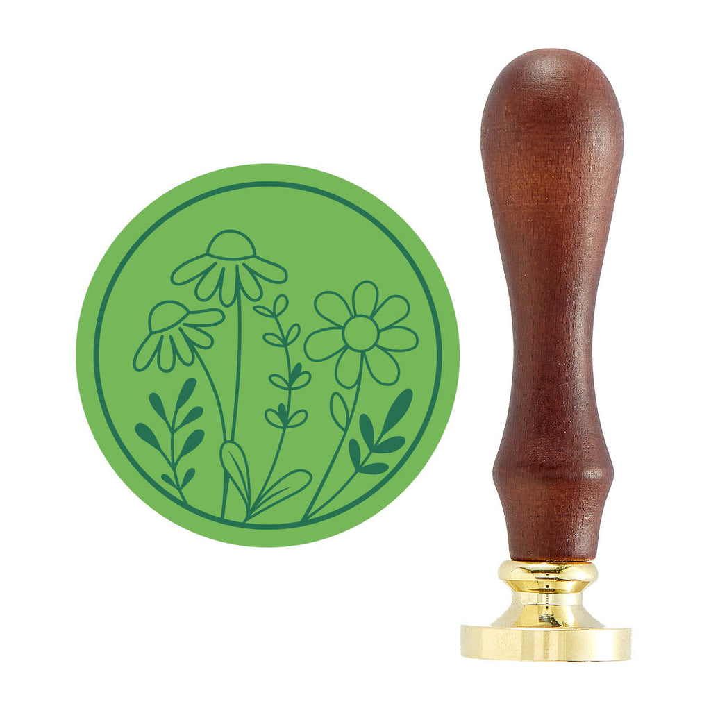 Fall Meadow - Wax Seal of the Month! It has one wooden handle that supports a 1" round brass seal stamp design on its end.