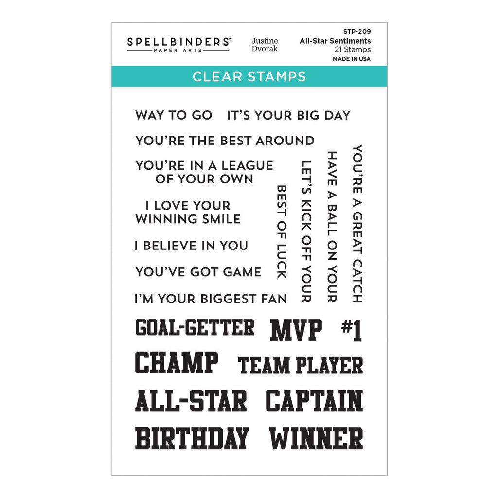 / All-Star Sentiments Clear Stamp Set from the Game Day Collection by Justine Dvorak