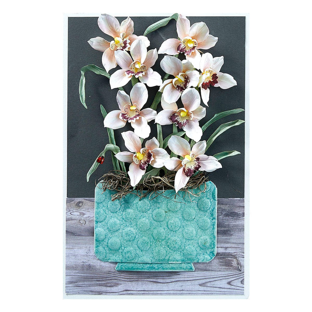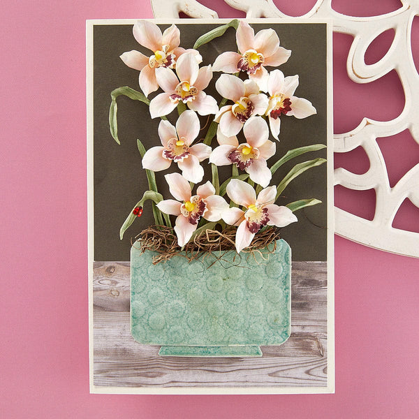 Cymbidium Orchid and Ladybugs Etched Dies are part of the Winter's Grace Garden Collection by Susan Tierney-Cockburn. Create beautiful orchids on stemmed foliage with this set of six thin metal cutting dies. It comes with Susan’s signature ladybugs to finish the ensemble. Approximate Finished Orchids on Stems with Foliage measures 0.75 x 2.75 x 5.75 in./1.90 x 7.00 x 14.60 cm.