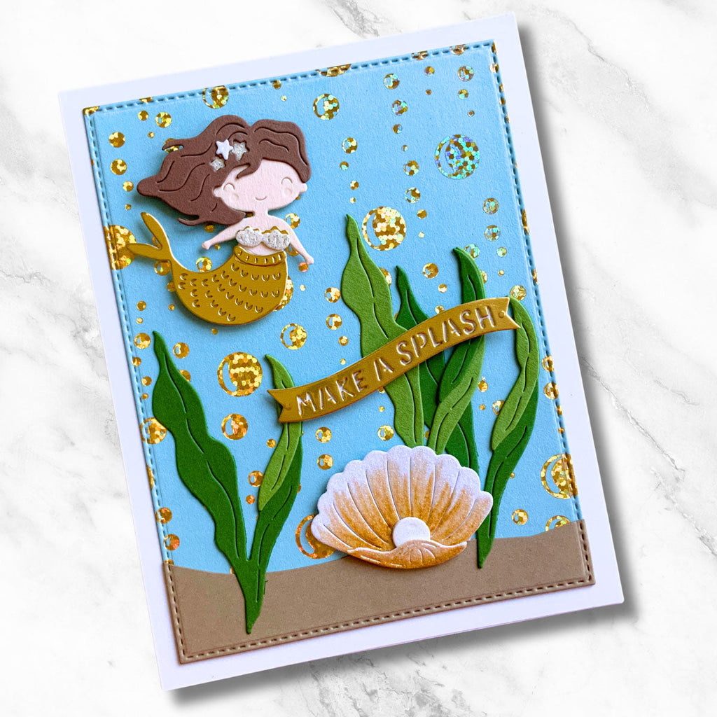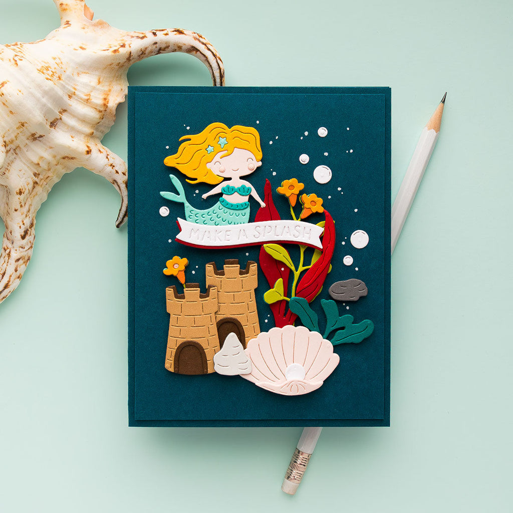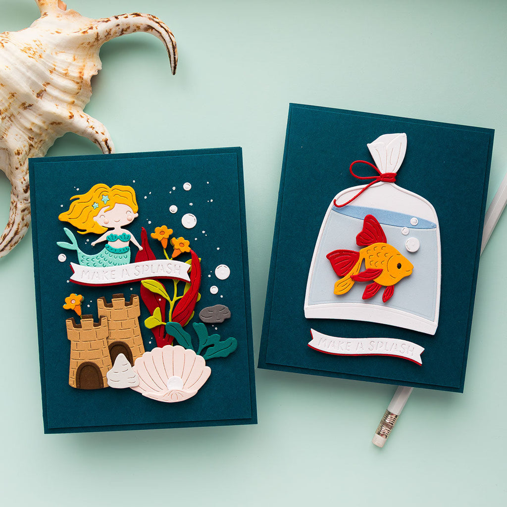 Make waves in your crafting with the Splash Tales Large Die of the Month! This enchanting set lets you build whimsical underwater scenes featuring a sweet mermaid, goldfish in a bag, seashells, plants, and more. Perfect for birthdays, encouragement, or just-because projects, these dies bring a sense of magic and storybook charm to your handmade cards and scrapbook pages.