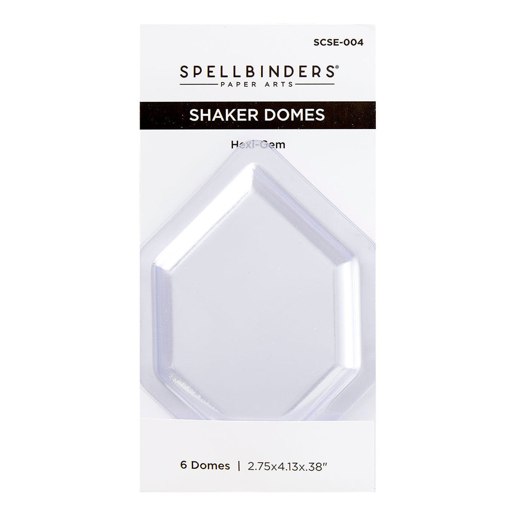 Hexi-Gem Shaker Dome comes in a pack of six clear shaker domes. The raised area measures 0.38 inches so you can fill it with chunky glitter, shaker mixes and more for a wonderful interactive project! Add to your card, scrapbook layout, home décor and beyond. Works well with S5-588 Essential Hexi-Gem Etched Dies to die-cut patterned paper, stamped images or even a photo to add to the inside.