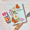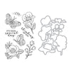 Special Day Butterfly Stamp & Cut Set is from the Spring Whimsy Collection. This set of eight stamps and seven coordinating dies gives you tons of options for adding a breath of spring cheer to any project. With a closed winged butterfly to perch on a flower, a fluttering open winged butterfly, two large blooms and a floral sprig, you can easily create lots of different looks with one stamp set. Also included are two sentiments, 'thinking of you' and 'it's your special day,' plus a sparkle pattern stamp for extra fun and whimsy. Use the coordinating dies to cut out the stamped images for extra dimension and creative possibilities!
