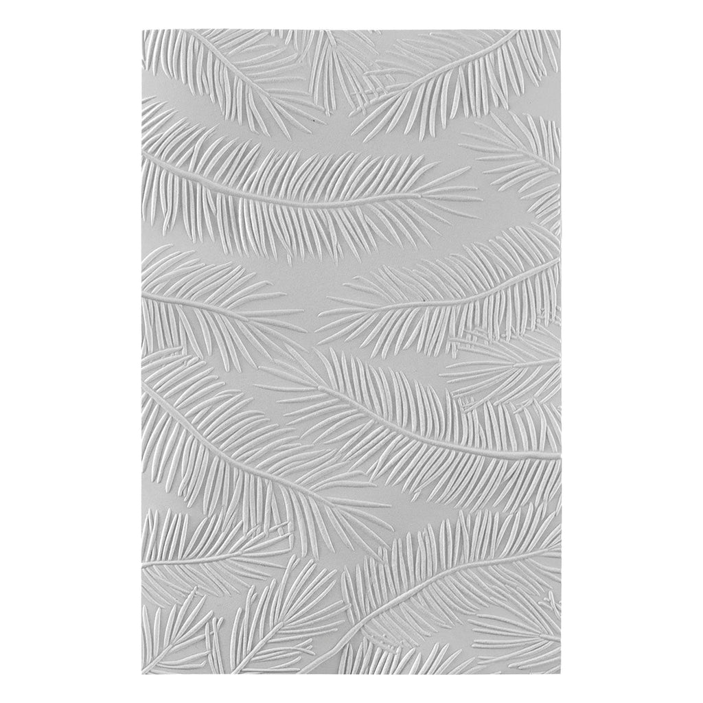 Branches 3D Embossing Folder and Die Set is a 5.50 x 8.50-inch embossing folder is filled with detailed pine needle branch design. It also includes one thin metal cutting die shaped into a pine needle branch. Die-cut the pine needle branch shape first and then match up the shape with the embossed shape in the 3D Embossing Folder for better results.