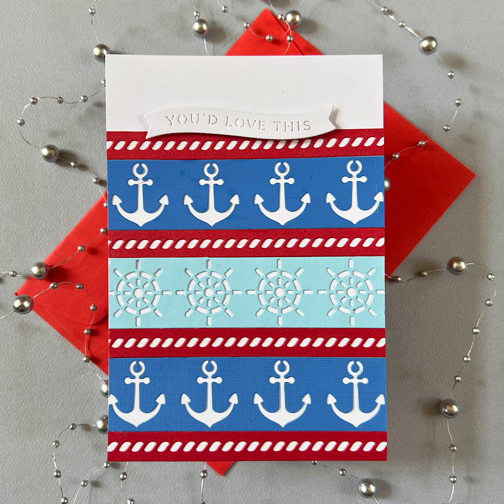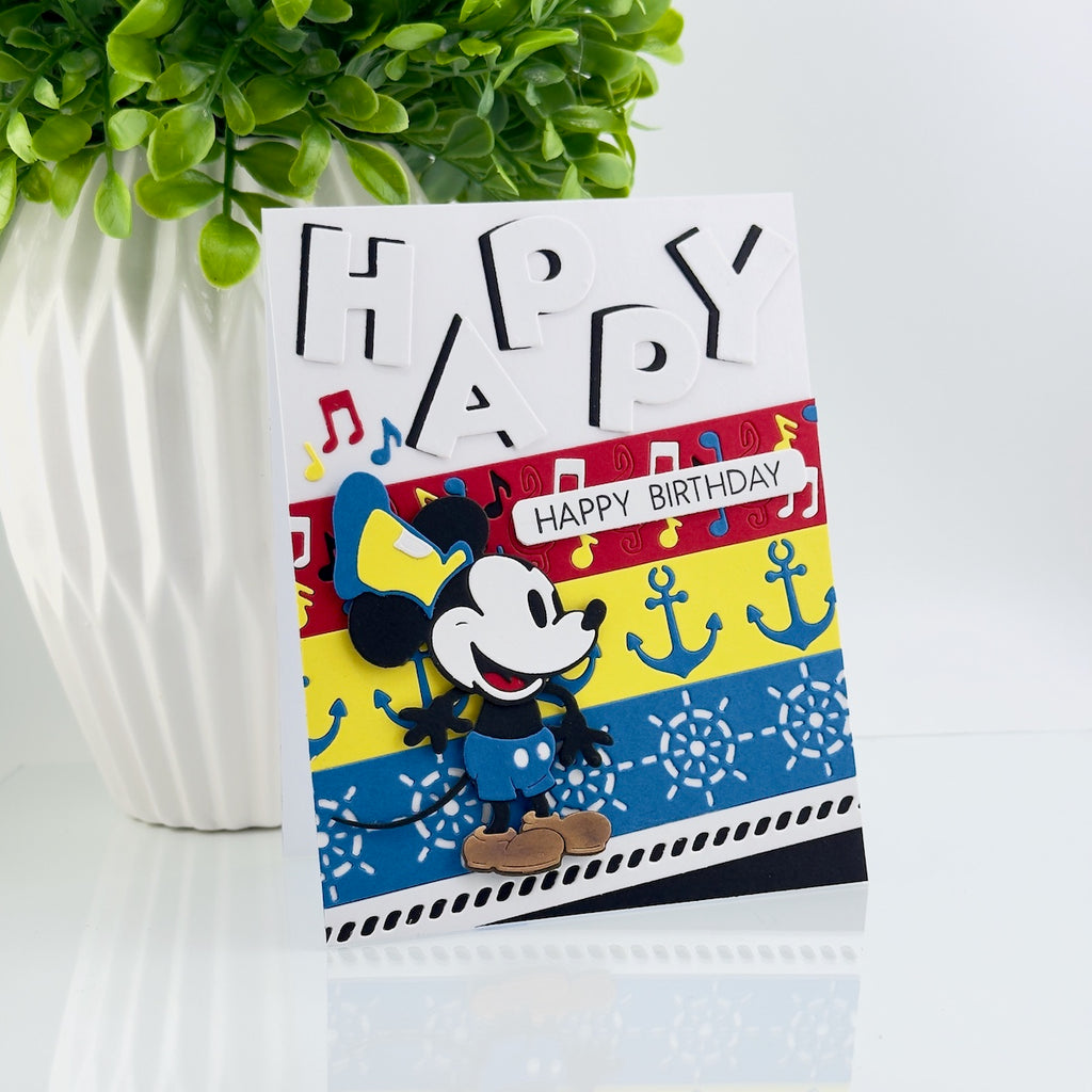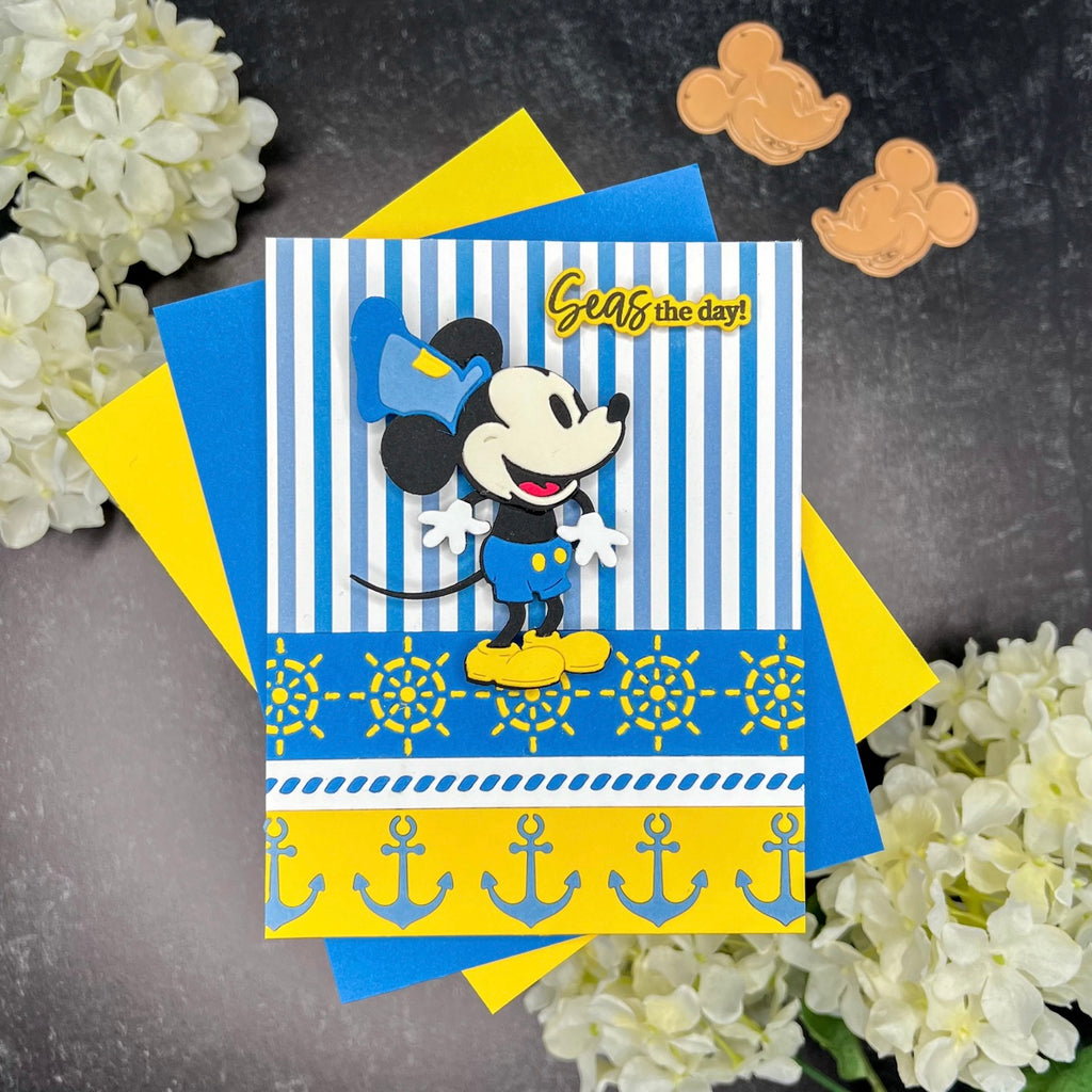 Classic Mouse Borders Etched Dies are from the Say Cheese Classic Mouse Collection and give the perfect touch to all your scrapbook pages and cards. This set of four borders channels Steamboat Willie's nautical origins and includes borders featuring an anchor, rope and helm, plus one full of music notes to whistle along with. With repeating patterns, these borders can be cut multiple times to create borders than stretch to any length. Use just one on a scrapbook page for a grounding element, or try all four together for an unforgettable card.