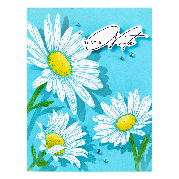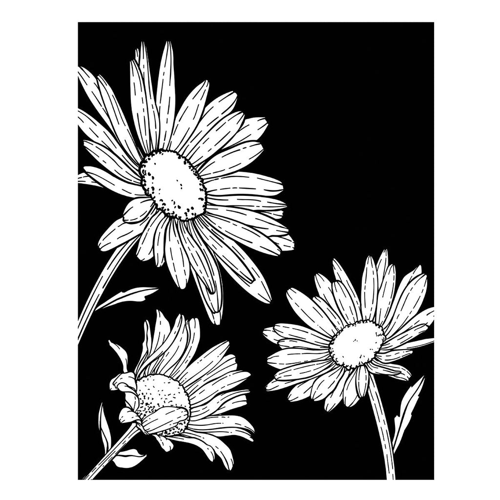 Daisy Trio Press Plates are from Yana's Daisies Collection by Yana Smakula. This sweet plate presses three full bloom daisies on an A2-size (4.25 x 5.5 inch) card front. To add more depth, use the coordinating stencil available in BD-0946 Daisy Trio BetterPress and Stencil Bundle to add color with inks, paints and paste mediums. Ink the plates with the BetterPress Ink to be pressed against the BetterPress Cotton Card Panel and Sheets for a crisp letterpress design.