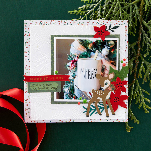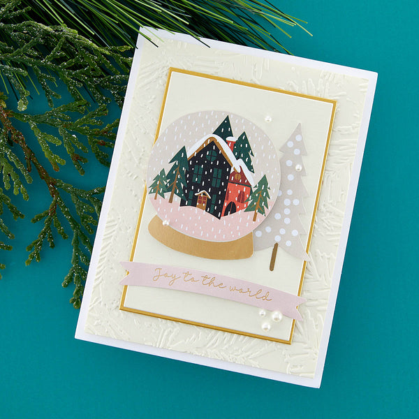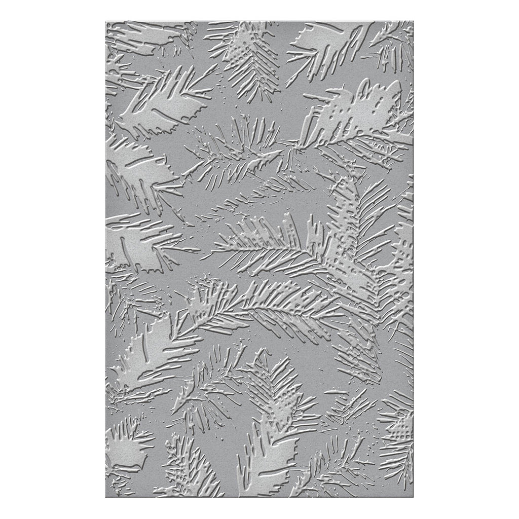 In the Pines Embossing Folder is from Make It Merry Christmas and embosses an all-around detailed pine needle branches background. It covers a standard card front from A2 to 5 x7-inch to even the trendy slimline cards. A perfect dimensional addition for your holiday and outdoor themed projects.