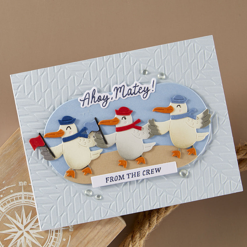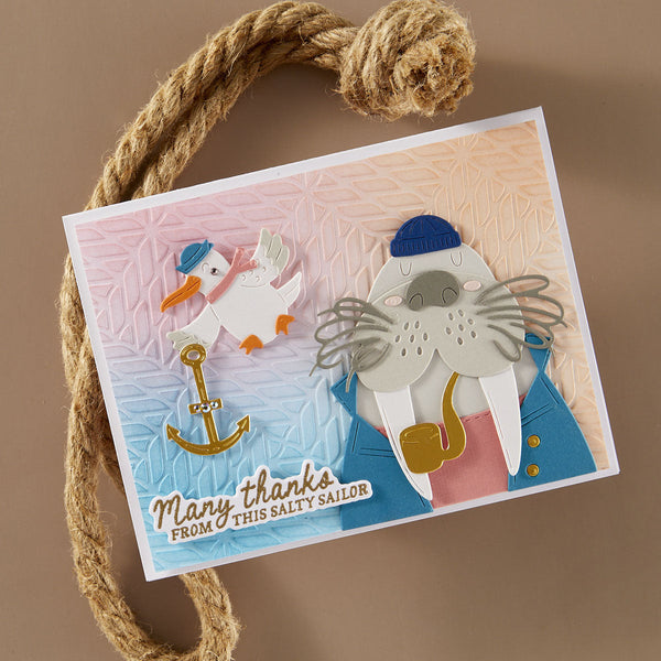 Bring texture and movement to your makes with the “Mariner's Weave” Embossing Folder of the Month! This versatile folder features a bold, woven pattern reminiscent of fishing nets or ocean currents—ideal for adding dimensional detail to seaside, masculine, or modern projects.