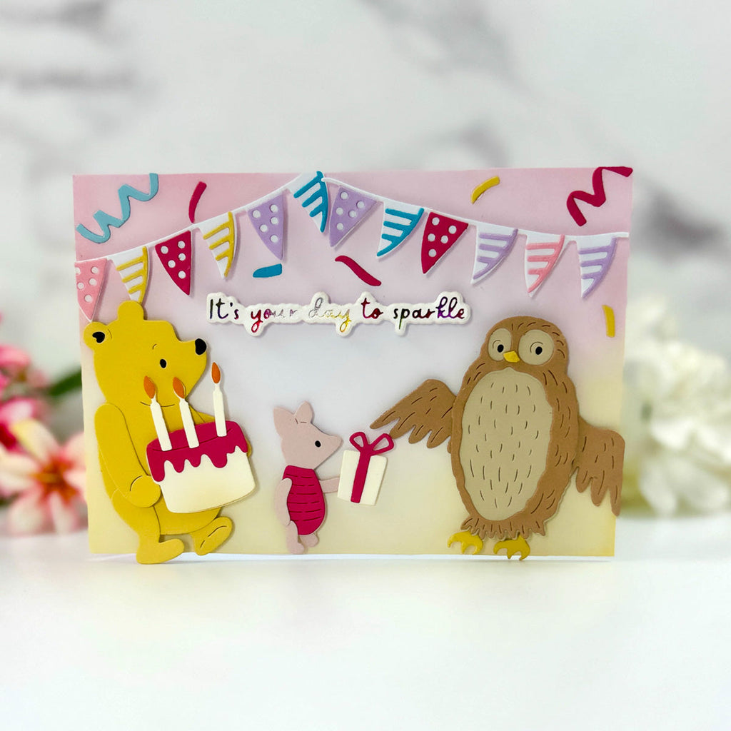 This special collaboration with Simple Stories brings a wonderful group of childhood friends to life! Combined with the Say Cheese Classic Pooh Birthday Collection of papers and stamps, this sweet offering adds dimension and texture to another level for Pooh papercrafters!