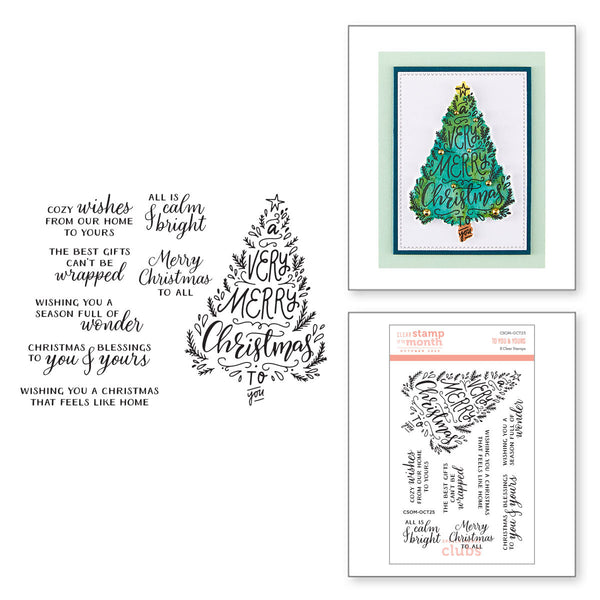 Celebrate the beauty of the holiday season with the To You & Yours Clear Stamp Set. Featuring an elegant typographic Christmas tree centerpiece and a mix of heartfelt sentiments, this collection is perfect for spreading warmth, wonder, and joy.
