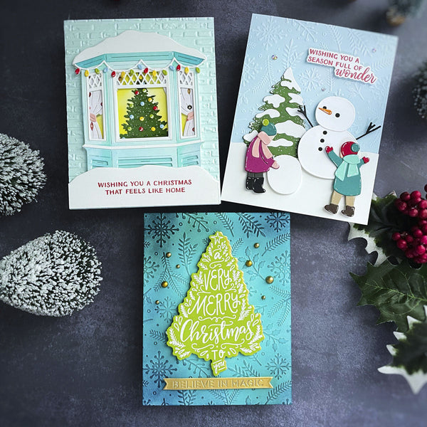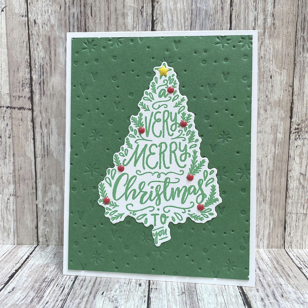 Use the large tree stamp as a striking focal point or pair the smaller greetings with your favorite dies and embossing folders. Whether you prefer classic, cozy, or modern designs, these timeless sentiments bring festive cheer to every handmade card, tag, or holiday note.