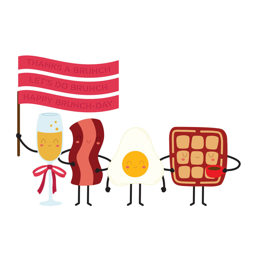 Let’s Do Brunch brings together an irresistible cast of breakfast favorites—each one full of charm and personality. Crisp bacon curls, a sunny-side egg glows with warmth, a bubbly mimosa lifts the mood, and a cheerful waffle anchors the group with cozy, gridded texture. Thoughtfully designed layers allow each character to come to life with expressive faces, playful posture, and delightful little accents like tiny cups and waving banners.