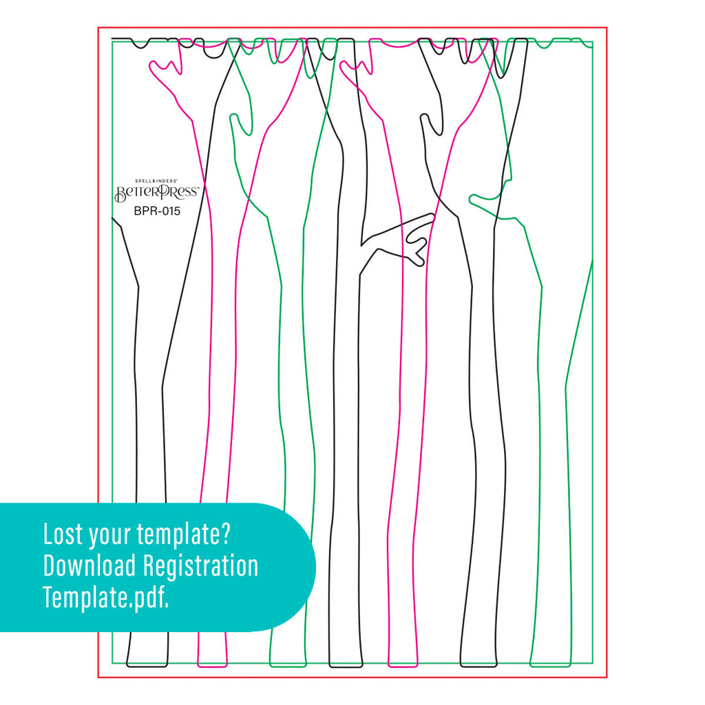 Birch Trees Registration Press Plates are part of the Dancin' Christmas Friends Collection. With this set of four press plates, three thin metal cutting dies and one mylar printed registration template, it creates an adorable birch tree scene! Just add all the cute die-cut shapes to finish the design. Registration Press Plate sets make creating multi-color letterpress designs simple and foolproof! Simply follow the multi-colored mylar template to layer beautiful colors onto your BetterPress paper for a stunning effect. This clever innovation enhances your letterpress abilities to the next level.