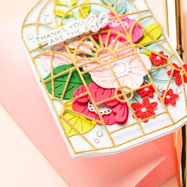 Botanical Atrium - January 2025 Large Die of the Month: Bring the beauty of a lush garden into your crafting with the January 2025 Large Die of the Month, Botanical Atrium. This exquisite set includes 20 cutting dies that allow you to create a stunning atrium-inspired design, filled with intricate floral and foliage elements.