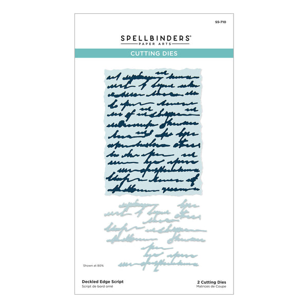 Deckled Edge Script Etched Dies are from the Beautifully Imperfect Collection. What an amazing background to create with these two thin metal cutting dies! Use the outline die separately to create a standard A2-sized (4.25 x 5.50 in.) panel of torn-edged paper, or nest the two dies together to cut a detailed scripted panel.