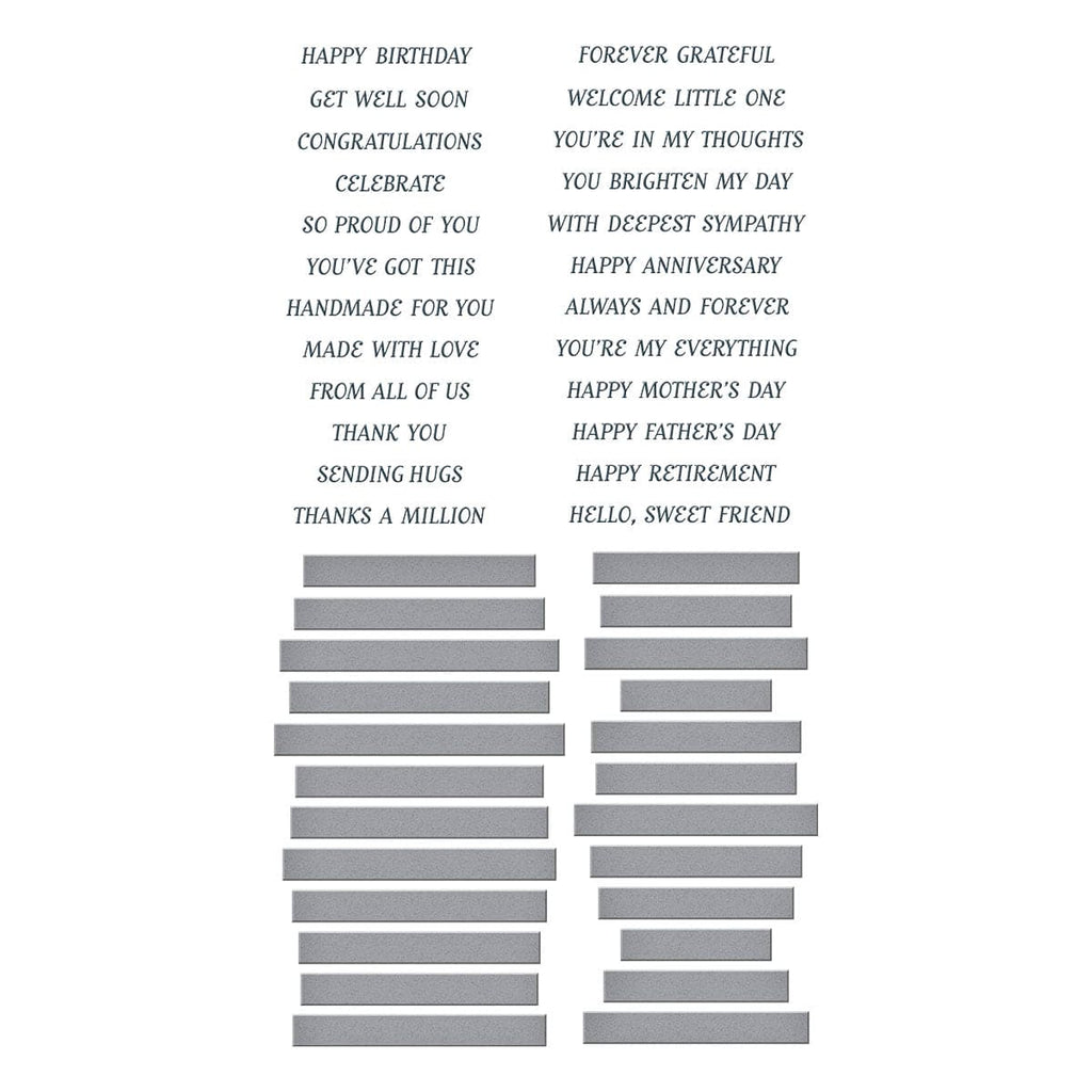 Ideal Moments Press Plate & Die Set is part of the Vivid Expressions Collection. Each of the two plates press 12 sentiments all at once and cut with its matching thin metal cutting die for a time-saving step. There’s a total of 24 sentiments to choose from. The uppercase font sentiments cover many occasions from get well, handmade for you, thank you, welcome little one, happy anniversary, happy mother’s day, happy father’s day, happy retirement, and so many more! Ink the plates with the BetterPress Ink to be pressed against the BetterPress Cotton Card Panel and Sheets for a crisp letterpress design.