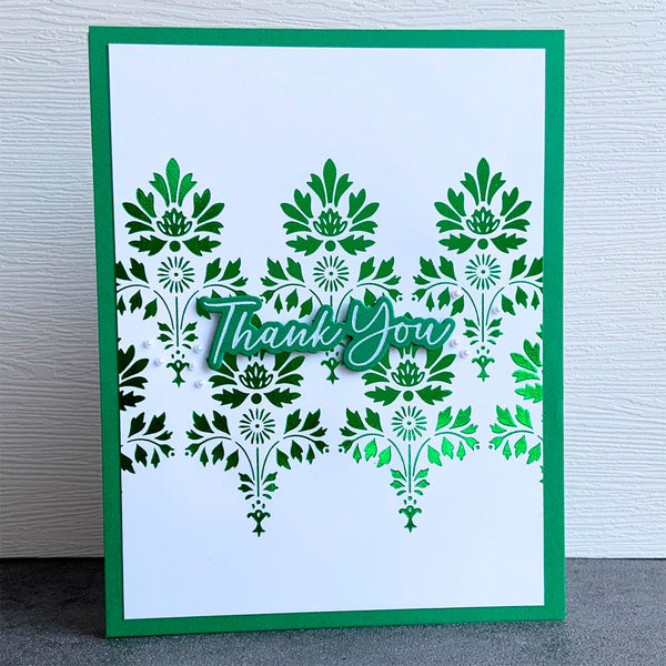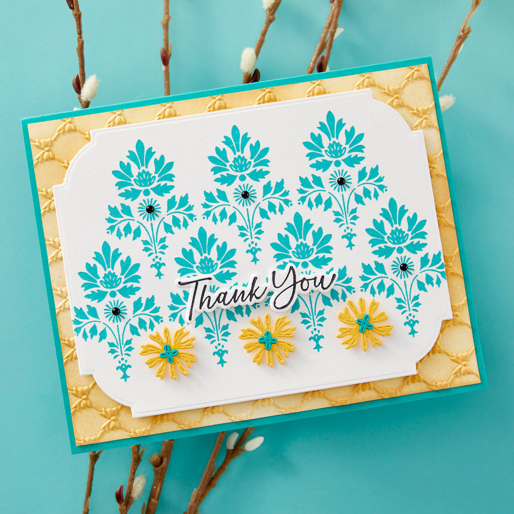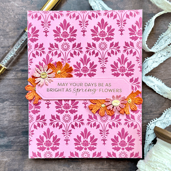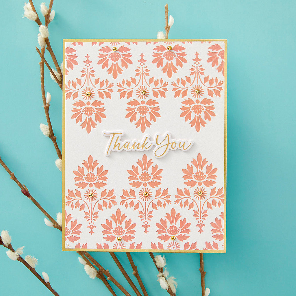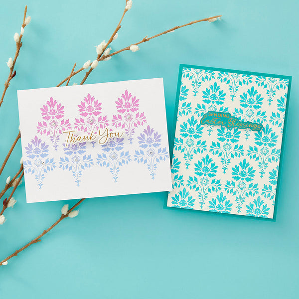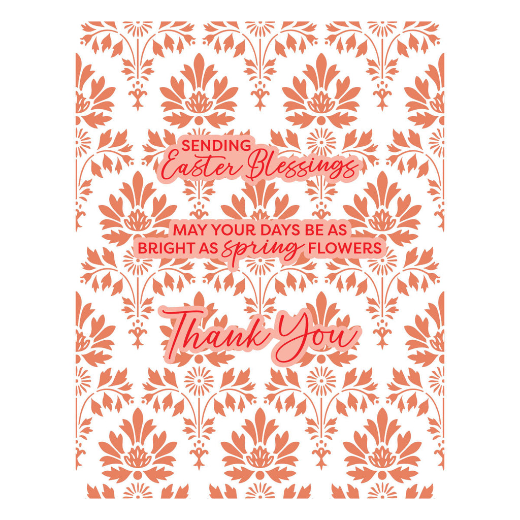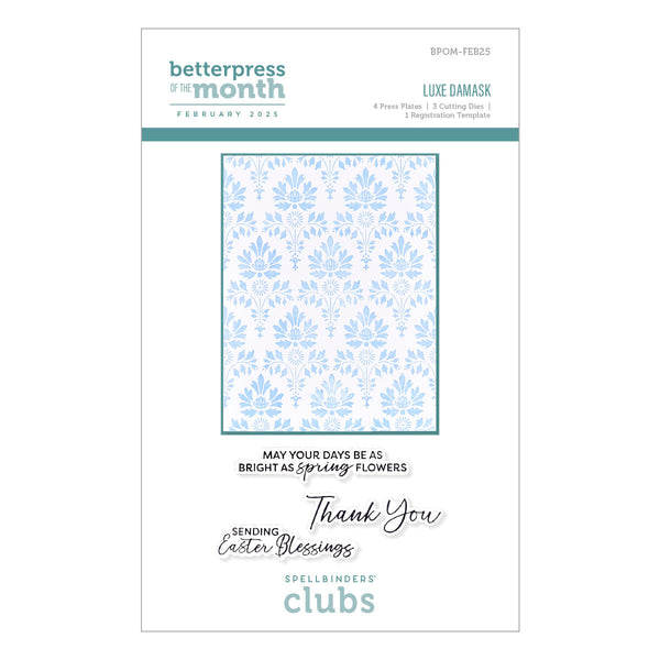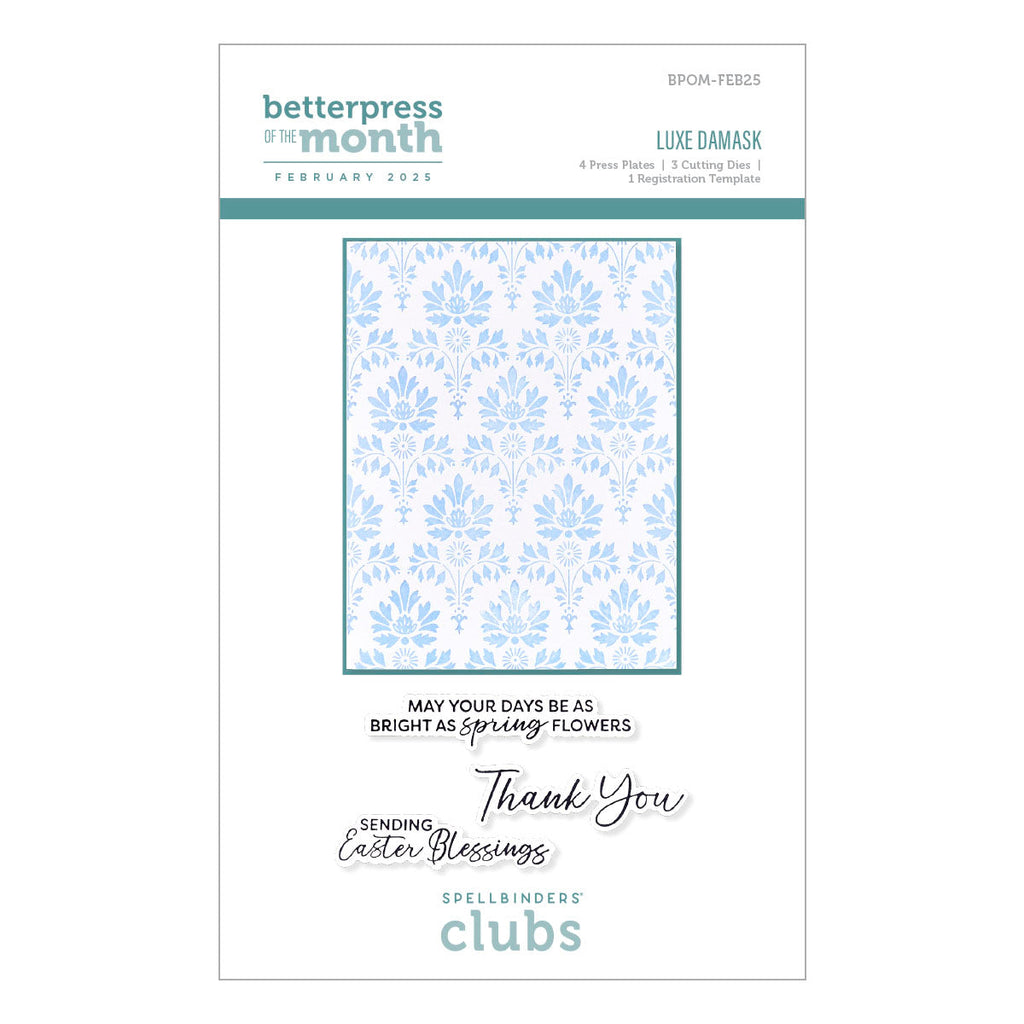 Luxe Damask - February 2025 BetterPress of the Month: This elegant set includes 4 BetterPress plates, 3 coordinating dies, and a 4-color registration template, making it easy to create beautifully detailed and professional-looking cards. The stunning floral cascade design pairs perfectly with heartfelt sentiments like "Thank You," "Sending Easter Blessings," and "May your days be as bright as spring flowers." Ideal for spring celebrations, Easter, and everyday gratitude, this versatile set will elevate your crafting with timeless charm!