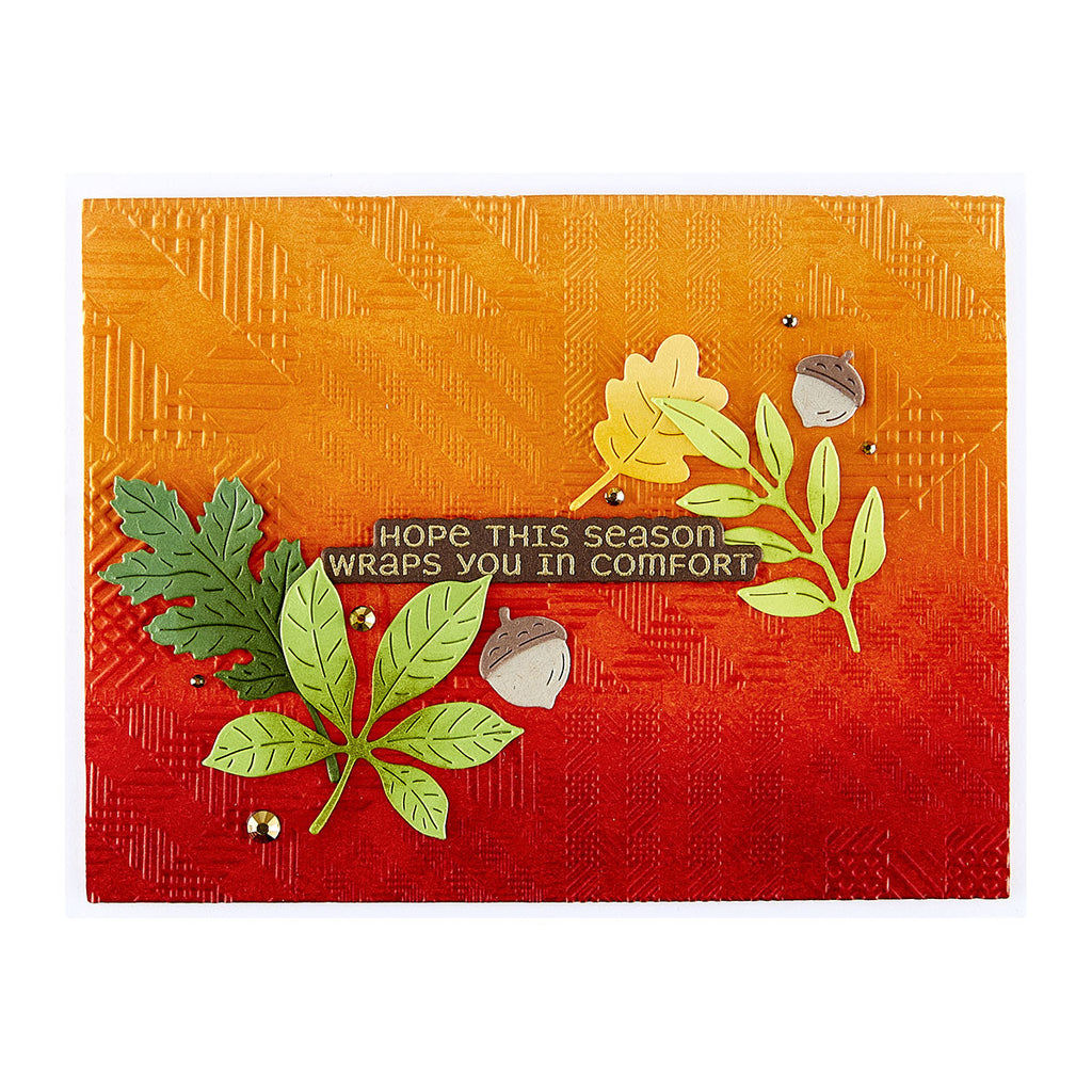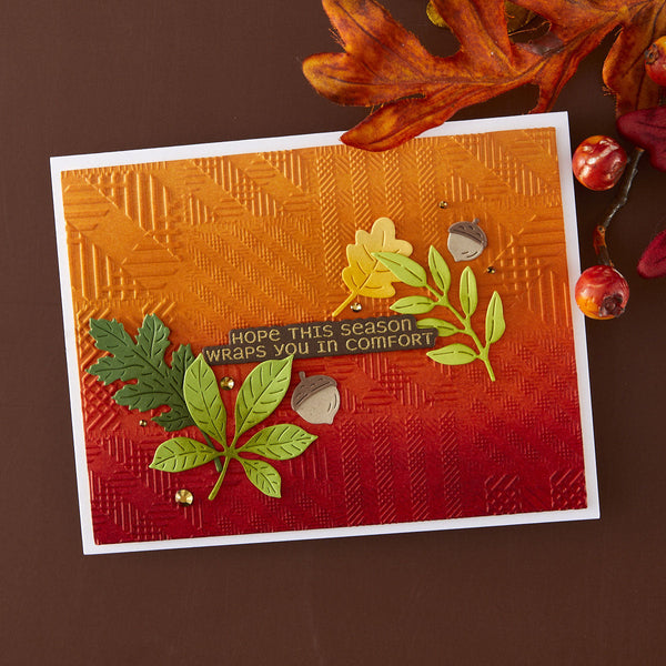 Add depth and warmth to your projects by inking, foiling, or sanding the raised design. Perfect for seasonal makes or everyday cards, this versatile pattern pairs wonderfully with fall leaves, stitched accents, and heartfelt sentiments that celebrate comfort and connection.