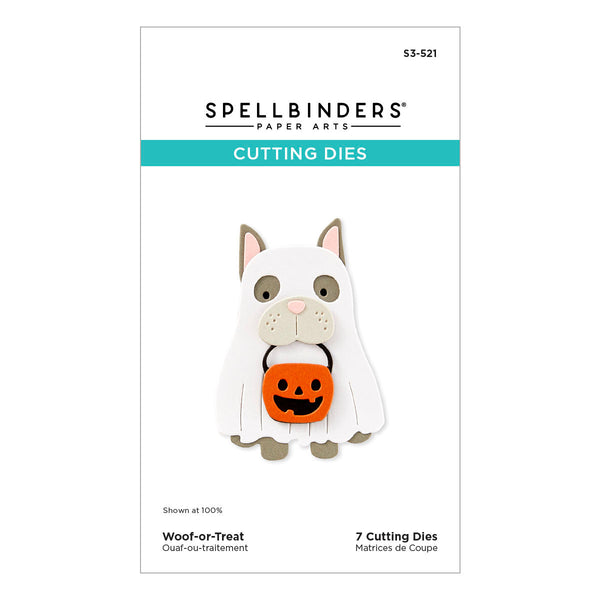 Woof-or-Treat Etched Dies are part of the Happy Haunting Collection. How can you resist this sweet ghost pup asking for treats? When assembled, it makes an adorable trick-or-treater with its ears, nose and paws sticking out of a ghost costume…pumpkin treat bucket included!