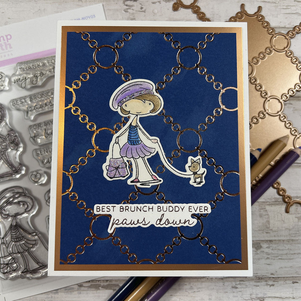 Celebrate friendship with a set that feels effortlessly chic. Go-To Girl pairs fashion-forward illustrations with sentiments that speak to the women who brighten every day. Each character is drawn with graceful, hand-inked lines—perfect for coloring, paper-piecing, or pairing with November’s luxe backgrounds.