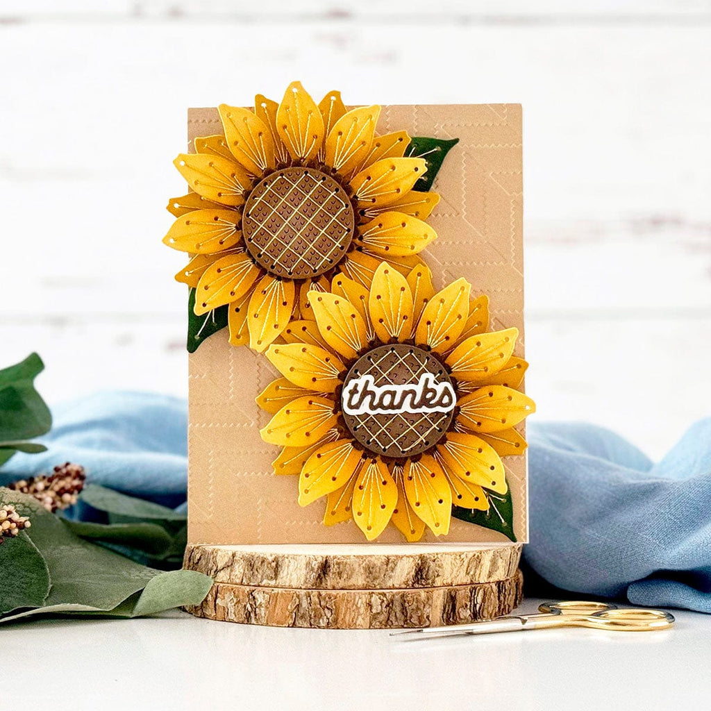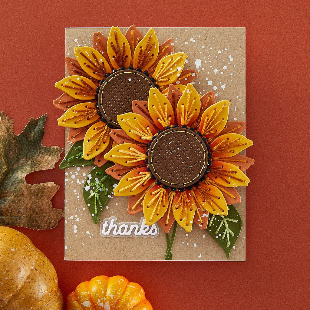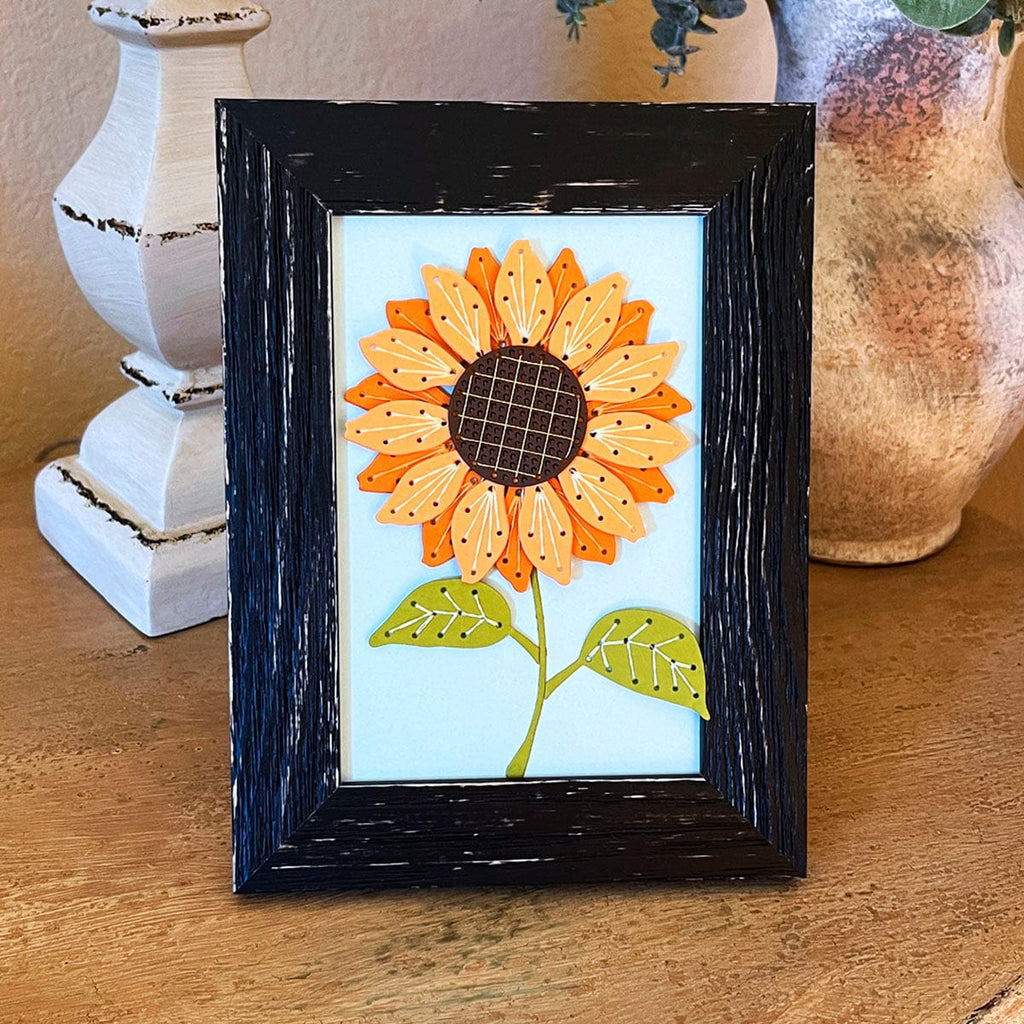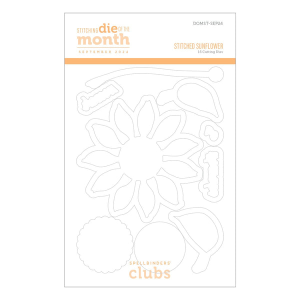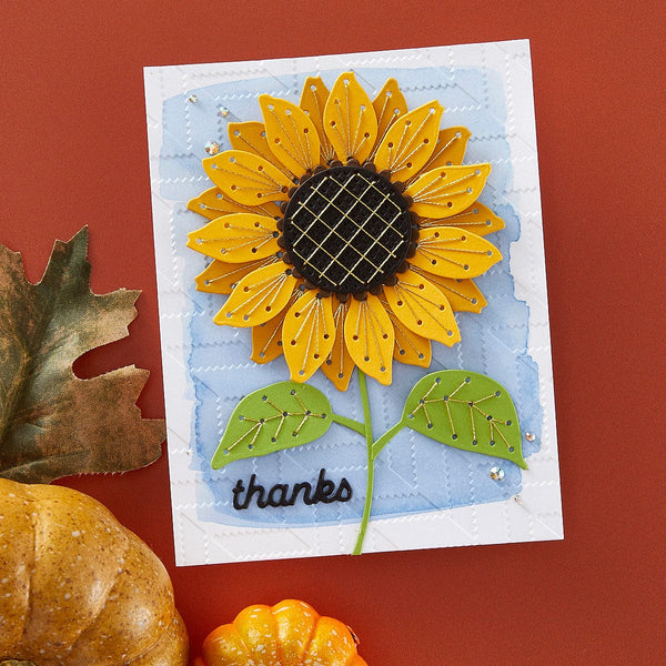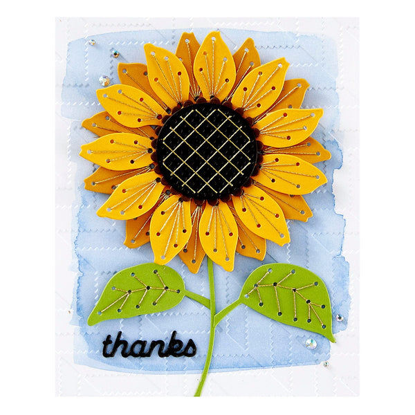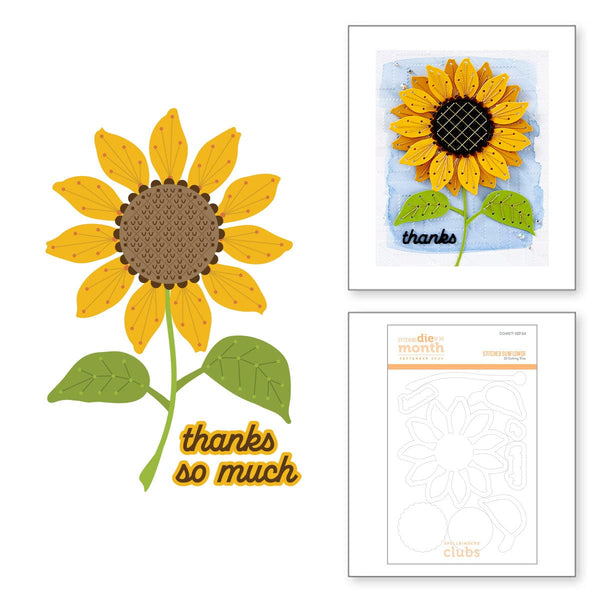 Stitched Sunflower - Stitching Die of the Month Die this 15-piece die set released September 2024 to our Stitching Die of the Month Club creates a fun paint palette. Use to create cards, décor, gift card holder, gifts, and more! Add stitching to have even more textures in crafts.
