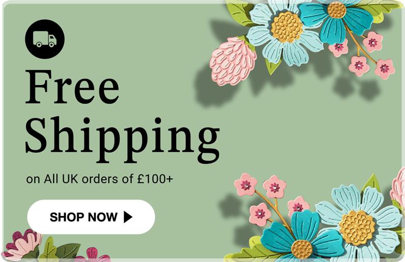 The following applies to UK customers only. Spellbinders UK Website orders of £100 or more (after discounts and not including taxes or any other fees) will receive FREE UK Shipping. Not applicable to international orders. Offer is only available to individual consumer use only; not available to retail / wholesale / distributor customers; not for distribution; excludes taxes and any additional charges; not valid on any previous web, phone or retail purchases; cannot be redeemed for cash; void where prohibited. Terms & Conditions are subject to change.