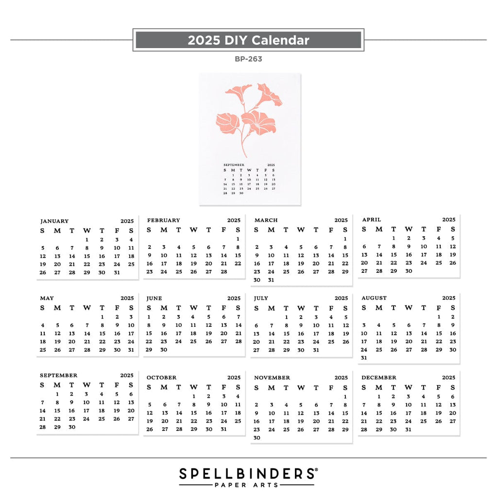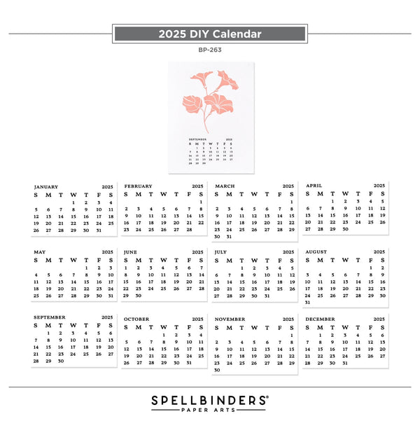 2025 DIY Calendar Press Plate and Easel Die Bundle is from the Floral Through the Year Collection. It includes BP-263 2025 DIY Calendar Press Plates and S5-673 DIY Easel Etched Dies so you can create your own custom monthly calendar. The set of 24 press plates includes a month calendar for the entire year, as well as weekday and month name plates to complete your calendar. The easel stand can hold 12 monthly calendar panels... or mix it up with other cards or paper projects. The stand is small, but mighty! Make one and send it with a card or calendar to friends…what a great gift idea!