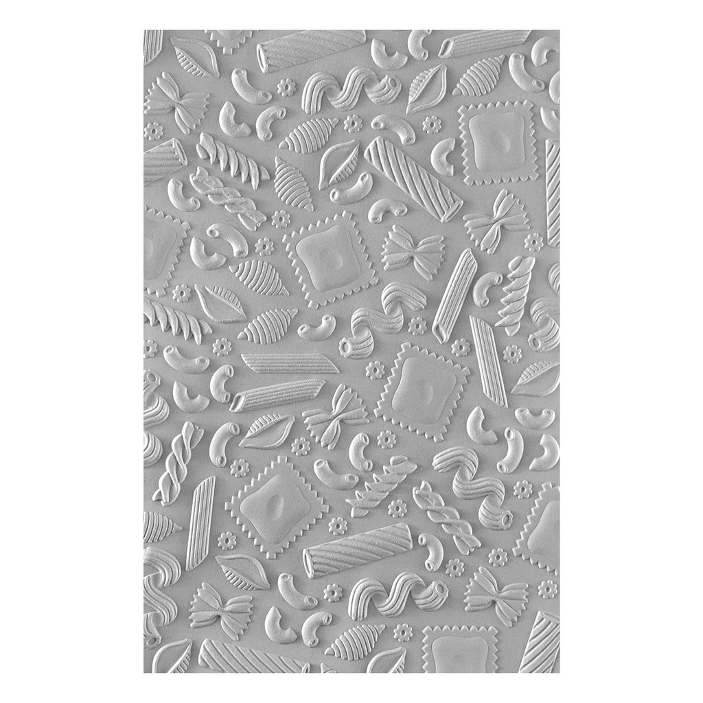 Al Dente 3D Embossing Folder is a 5.50 x 8.50-inch embossing folder filled with super fun pasta shapes bursting all over the background. What a fabulous addition to mix and match with the other sets in this collection!