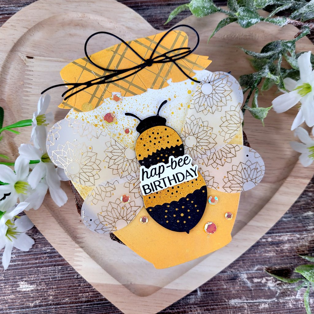 Bee Stitched- Stitching Die of the Month Die this 13-piece die set released January 2024 to our Stitching Die of the Month Club creates a cardfront full of love. Use to create cards, décor, gift card holder, gifts, and more! Add stitching to have even more textures in crafts.