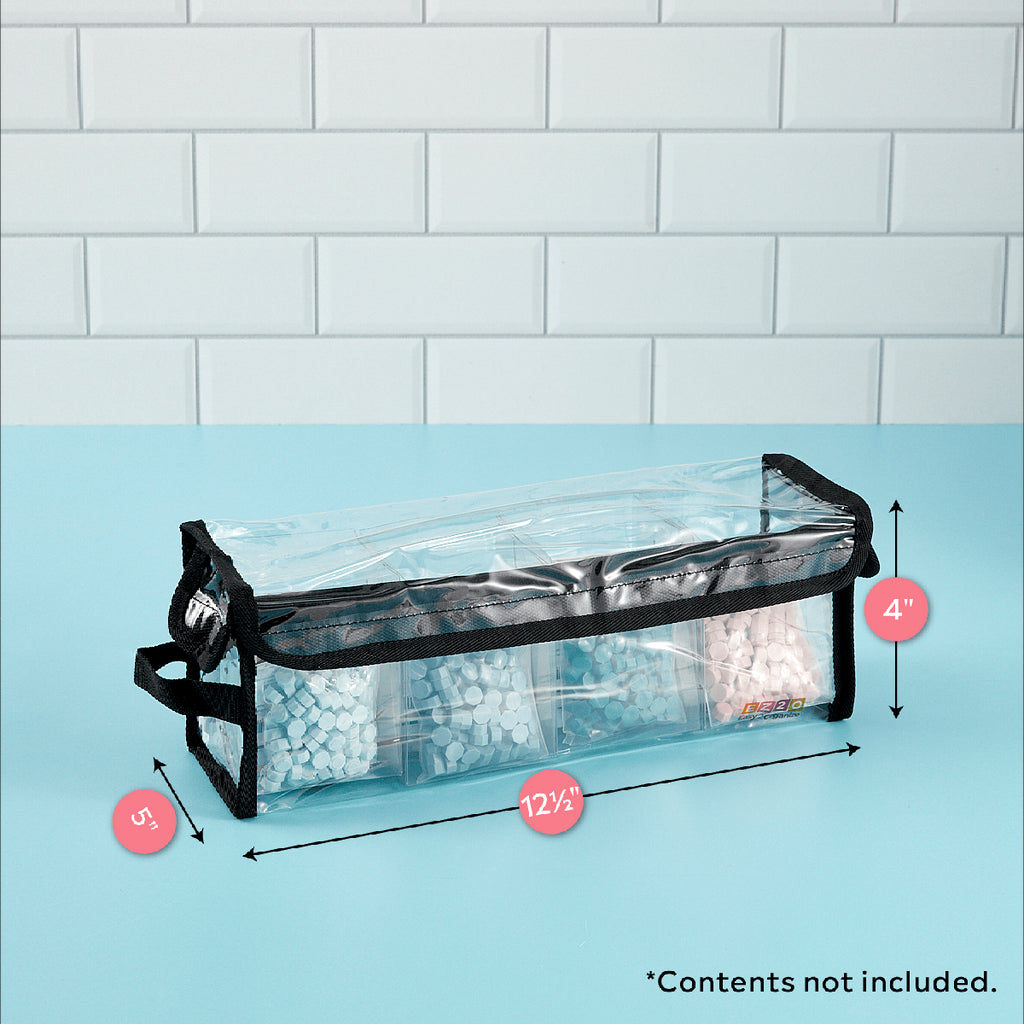 For those seeking an ideal storage solution for their inkpads, Totally Tiffany presents the Katya Buddy Bag. Boasting a clear material and featuring four interior boxes, this storage solution ensures easy accessibility and visibility of inkpads, wax beads, or other crafting supplies at all times.