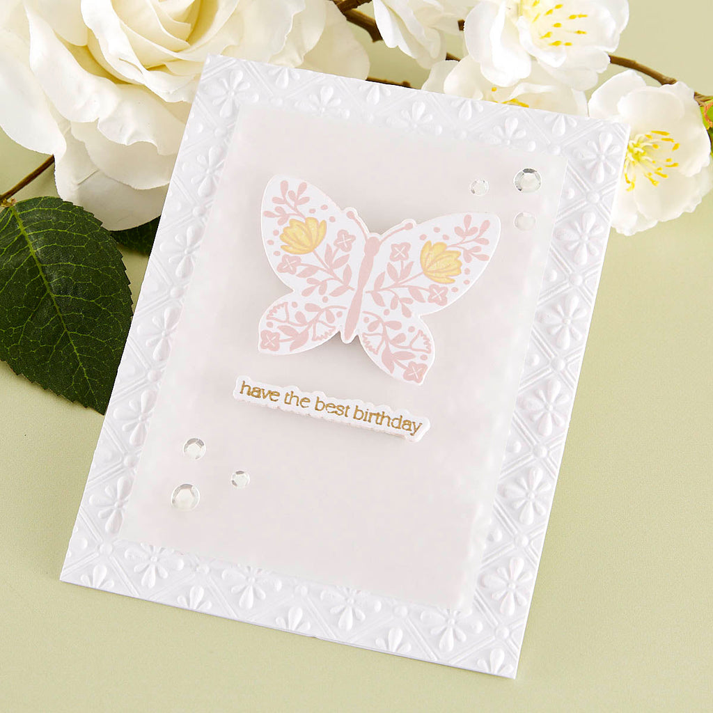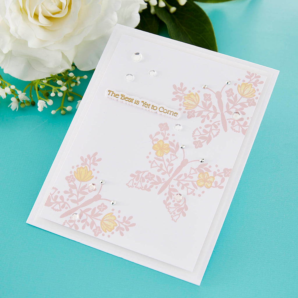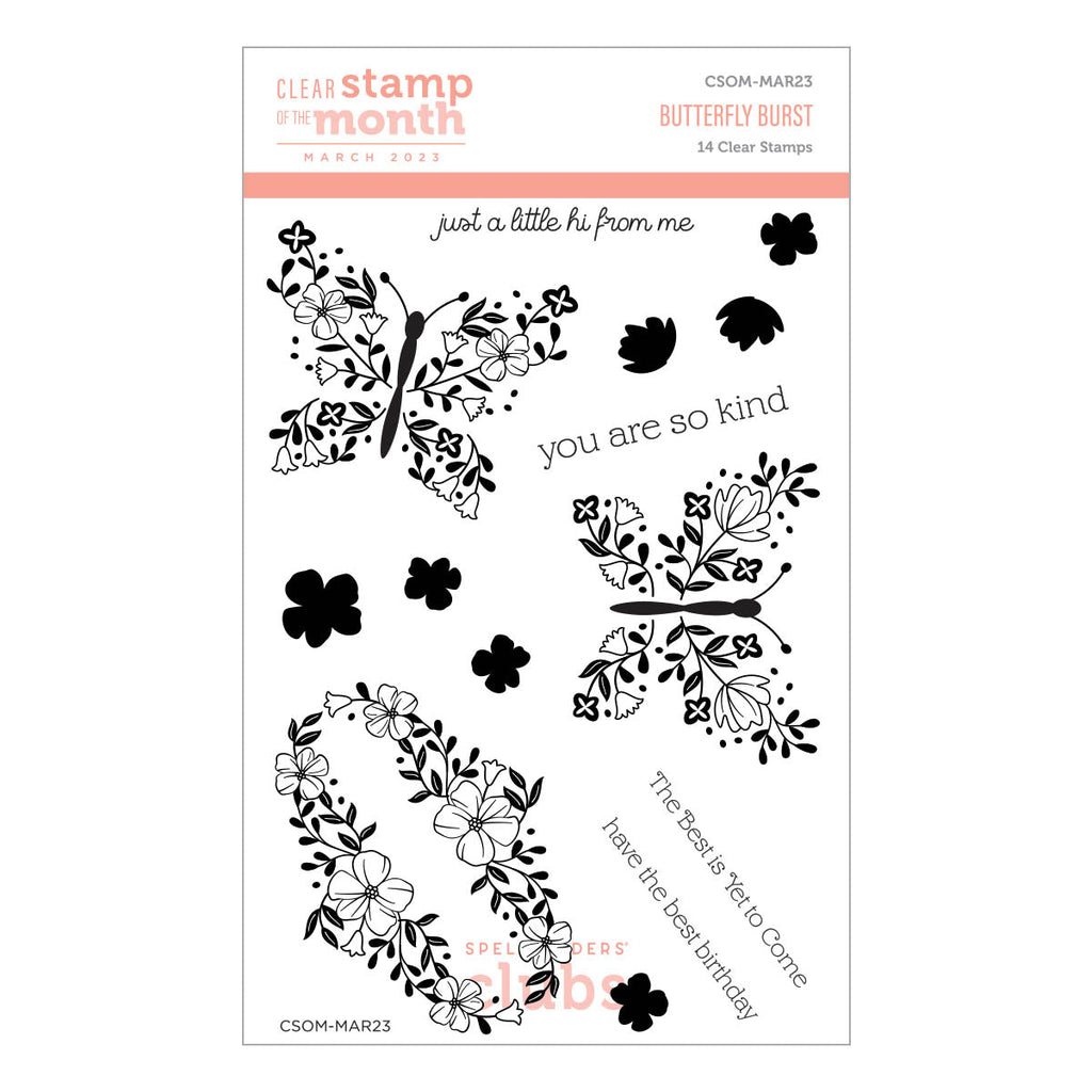 The 14-Piece Butterfly Burst - Clear Stamp of the Month is a unique and fun stamp set for cards and crafts. Released March 2023 to our New Clear Stamp of the Month Club. This unique clear stamp set features high quality photopolymer for clear, crisp impressions. Made in the USA. Our stamps create one of the best impressions on the market giving you a perfect stamped image every time!