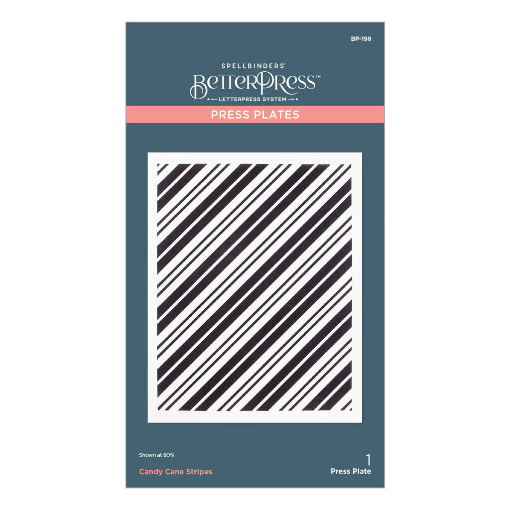 Candy Cane Stripes Press Plate is part of the Dancin' Christmas Friends Collection with a plate full of delightful stripes inspired by the iconic candy cane motif! A festive design for any holiday project. Ink the plates with the BetterPress Ink to be pressed against the BetterPress Cotton Card Panel and Sheets for a crisp letterpress design. Only four easy steps for professional results! Place the BetterPress Press Plate onto the Chase (magnetic platform to hold the press plate). Next, tape Card Panel on the Platen (clear top plate with registration marks). Apply Ink onto Press Plate. Make Letterpress Sandwich and run through the manual die-cutting machine. Change the way you create with BetterPress, an innovative way to achieve the elegant look of letterpress without all the mess. It’s an easy-to-use system that produces professional stationery style with detailed impressions that can be felt to the touch. Combine BetterPress with the Glimmer Hot Foil System, the Sealed with Spellbinders wax seal program, and the extensive library of Spellbinders products to create one-of-a-kind cards, stationery, projects and more. The BetterPress System works with your manual die-cutting machine to create beautiful, effortless, and detailed letterpress effects.