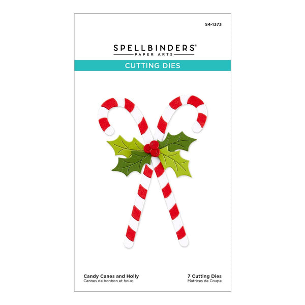 Candy Canes and Holly Etched Dies are from the Home for the Holidays Collection with a set of seven thin metal cutting dies. Crisscross the canes to make a wonderful focal point on a card front. Lift some of elements with foam adhesive to create interest and dimension. A perfect festive and classic holiday design!