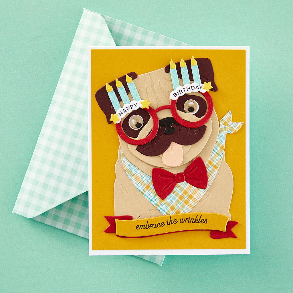 Cats and Pugs Accessories Etched Dies are part of the Bibi's Cats and Pugs Collection by Bibi Cameron. These sweet creatures must have accessories! So why not add them with this set of 19 thin metal cutting dies? Dress your furry friends up for the holidays and birthday celebrations. There are two sizes of bandanas and even a bow tie to deck them out for any occasion. So fun!