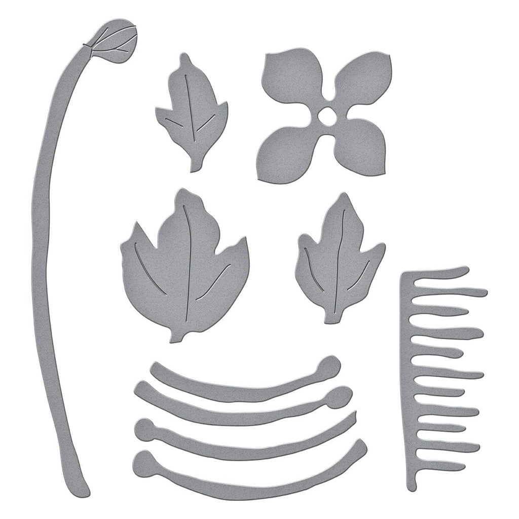 Chinese Meadow Rue Etched Dies is from the Through the Meadow Collection by Susan Tierney-Cockburn. Assembled, this set of five thin metal cutting dies creates a downward-facing four-petal lilac flower. Make many for a unique and stunning floral design.