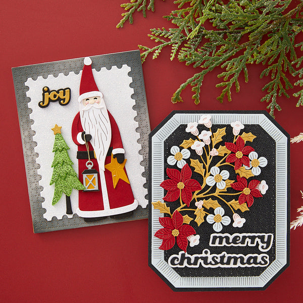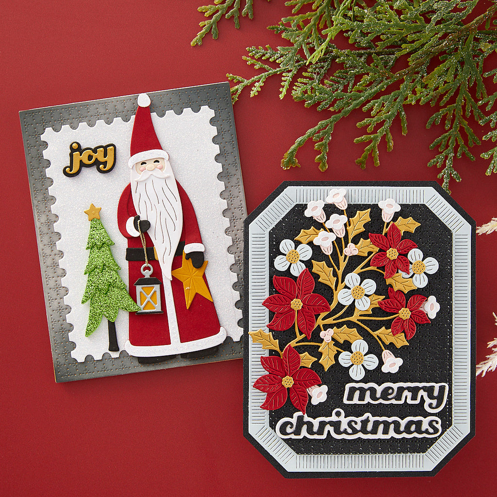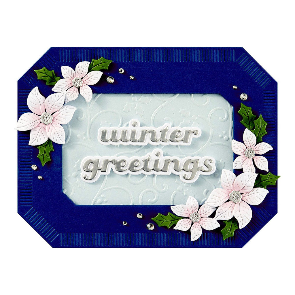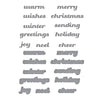 Christmas Greetings Etched Dies are part of the Home for the Holidays Collection with a set of 22 thin metal cutting dies. Each word has a die and a matching outline die to anchor the word. Create holiday greetings in this wonderful lowercase font.