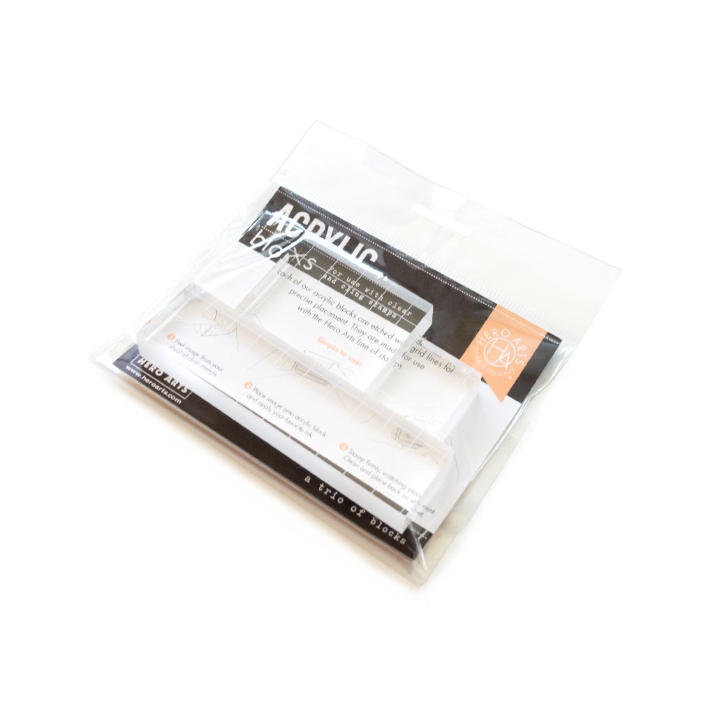 A trio of small acrylic blocks designed and styled to work with Hero Arts clear and cling stamps.