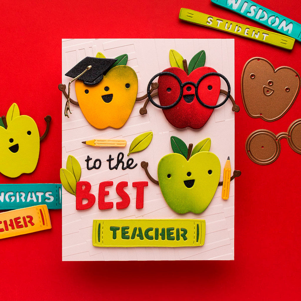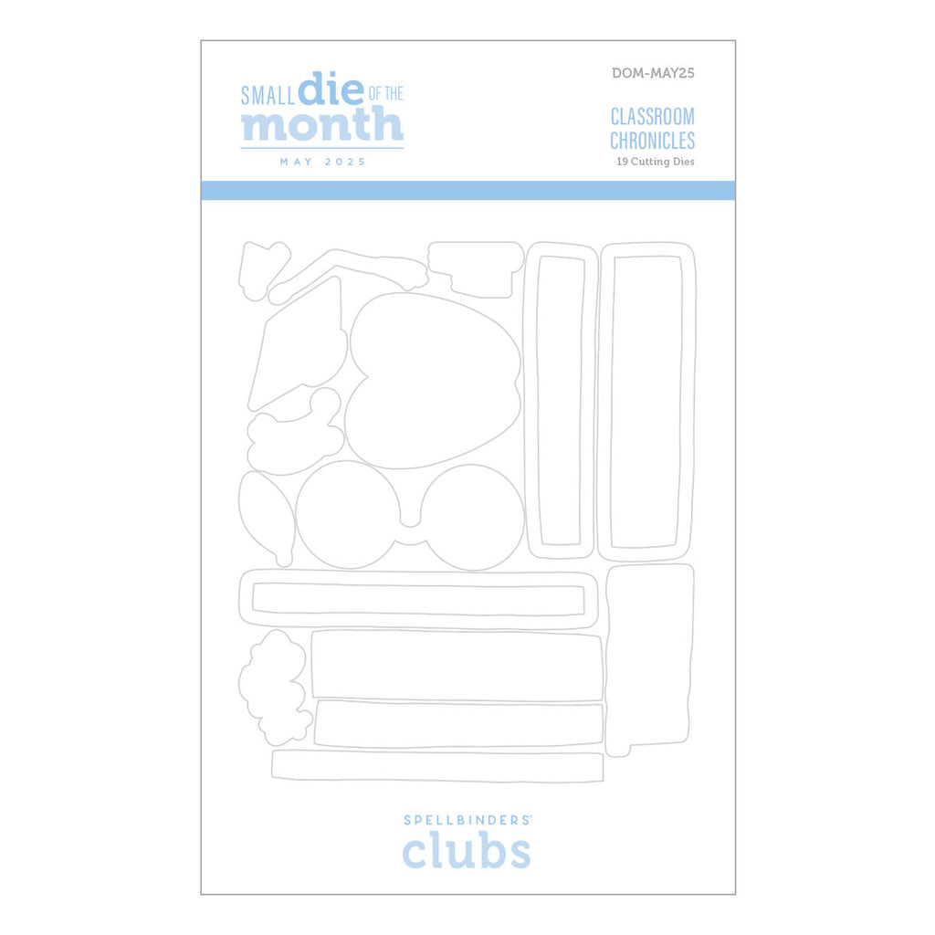 Classroom Chronicles - May 2025 Small Die of the Month: Celebrate academic achievement and classroom moments with the Classroom Chronicles die set – the Small Die of the Month for May 2025. This cheerful school-themed set features a stack of books, an adorable apple with glasses, a graduation cap, pencil, and layered sentiment options including “STUDENT,” “TEACHER,” “WISDOM,” and “KNOWLEDGE.” Perfect for creating teacher thank-you cards, end-of-year graduation crafts, or back-to-school projects.