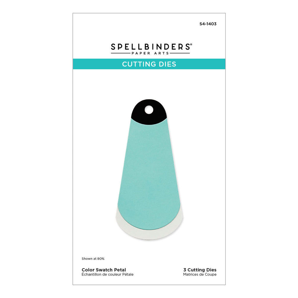 Color Swatch Petal Etched Dies are from the ColorWheel Swatch Party Collection. This helpful set of three thin metal cutting dies creates an elegant layered petal shape perfect for swatches of all kinds. Start with the base layer in white, add the second layer of the swatched color, then complete the petal with a black hole reinforcer for a classic touch. The Color Swatch Petal dies are perfect for swatching anything and everything in your collection, making sure you have a quick and easy reference for what is in your stash!